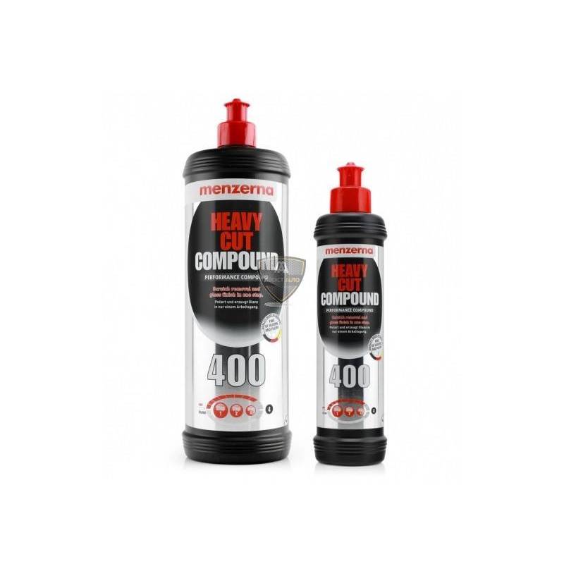 Menzerna Heavy Cut 400 est un compound dont la réputation n'est plus à faire. Il s'agit d'un polish puissant contenant des abrasifs ultra fins permettant de supprimer rapidement les swirls et micro-rayures ainsi que les marques laissées par un wetsanding (ponçage à l'eau) jusqu'au grain 1200.