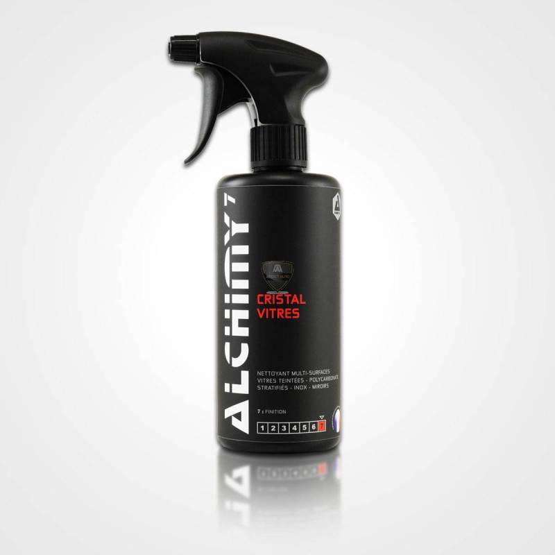 Alchimy7 Cristal Vitres s'utilise sur toutes les surfaces vitrées de la voiture (même teintées), intérieures, extérieures et les vitres en polycarbonate.