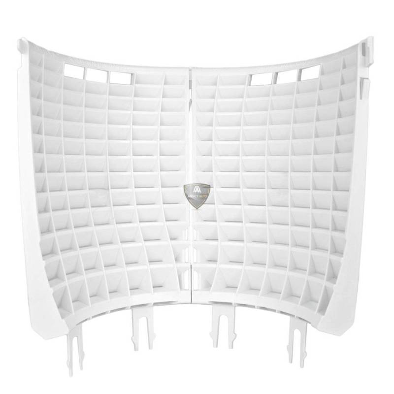 Le Scrub Wall 180 degrés contient 2 parois verticales de 90 degrés chacune, ce qui forme une paroi protectrice de 180 degrés (un demi-seau).
