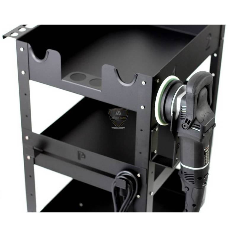Ce support peut-être accroché à un mur ou vissé sur la célèbre servante de travail DETAILING TROLLEY de Poka Premium.