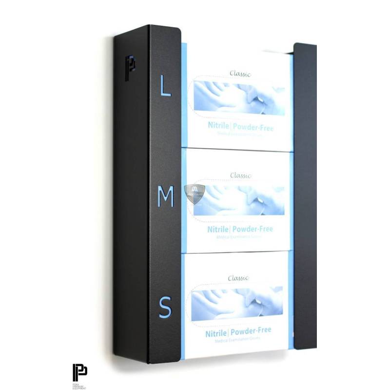 Dans cette version, le support pour boites de gants comporte sur le côté une découpe laser mentionnant les tailles de gants S, M et L. Il est donc parfait pour les centres de Detailing, garages, carrosseries ou encore centres de formations ayant besoin de mettre à disposition plusieurs tailles de gants.